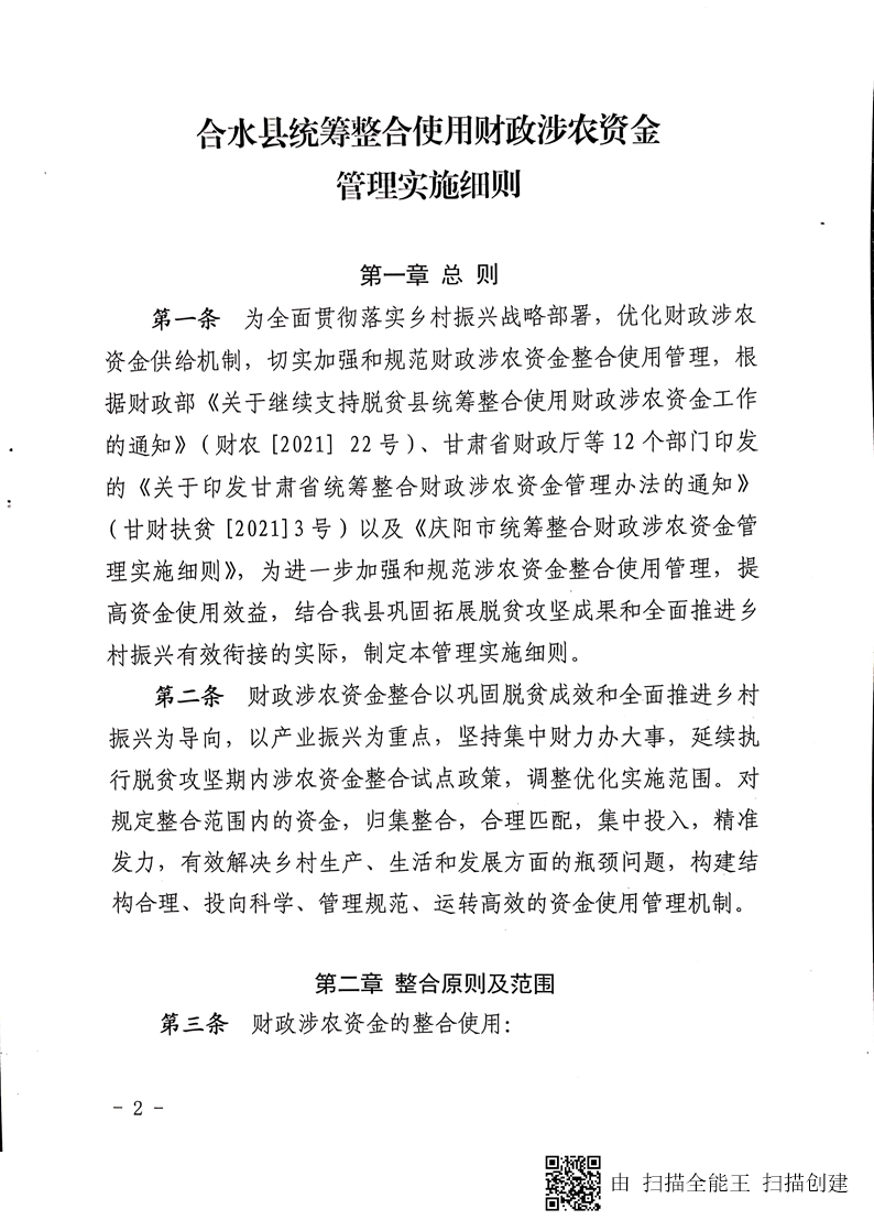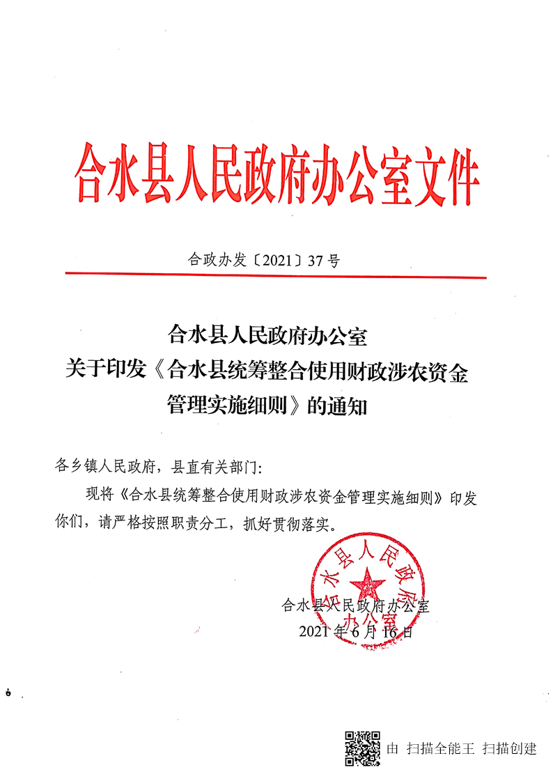 索引号: 3070211020000033000000/2021112100000157 发布机构: 生效日期: 2021-06-16 废止日期: 文 号: 所属主题: 通知公告 合水县人民政府办公室关于印发《合水县统筹整合使用财政涉农资金管理实施细则》的通知 来源: 发布时间:2021-06-16 浏览次数: 次 【字体:小 大】 【打印正文】 分享到: 【字体:小 大】