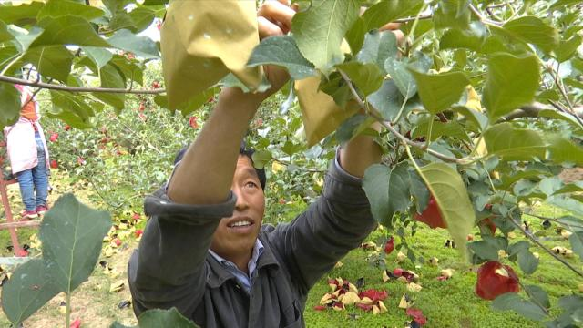 眼下苹果已进入取袋采摘期,合水县的各处果园里呈现出一派忙碌的丰收景象,果农们正忙着摘取苹果袋,让苹果充分着色,希望迎来大丰收。