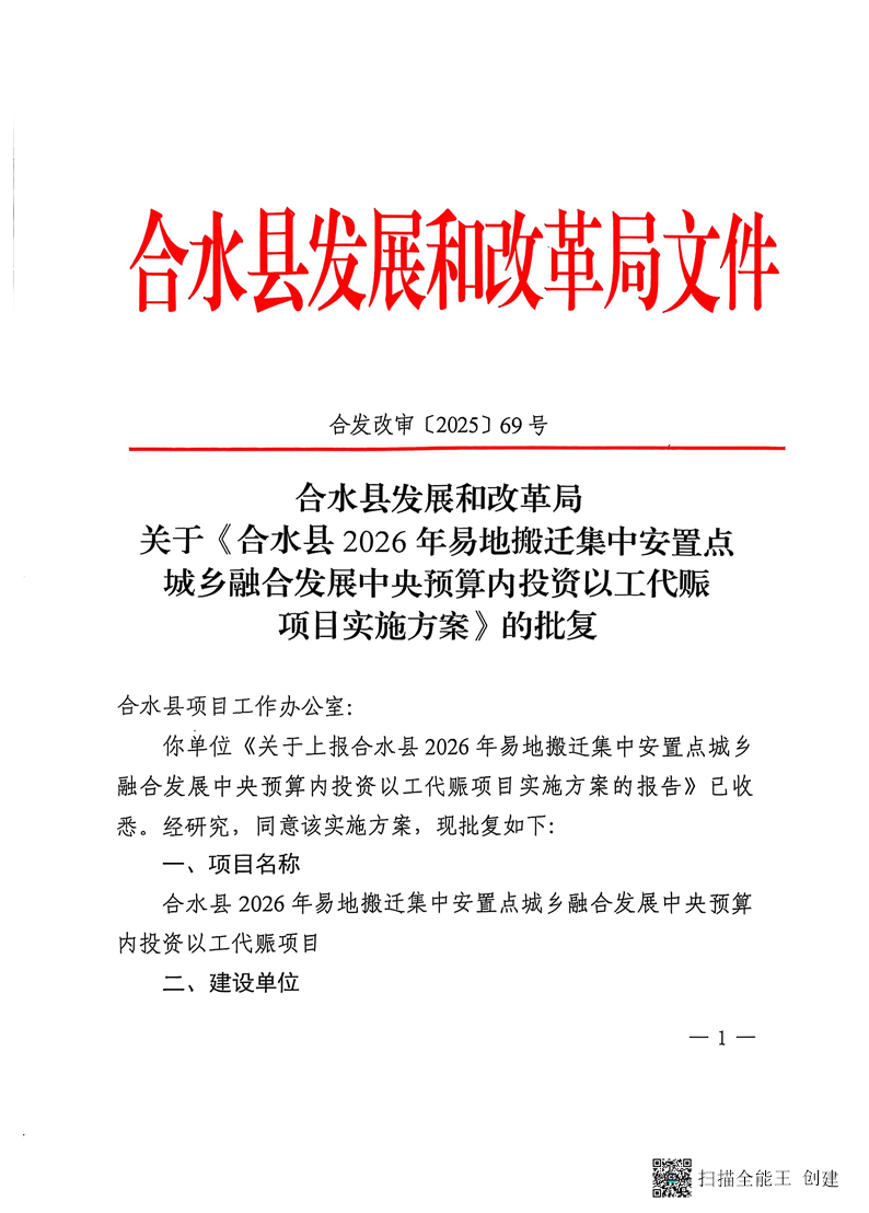 索引号: 3070211020000023000000/2026032000000008 发布机构: 生效日期: 2026-03-20 废止日期: 文 号: 所属主题: 重大建设项目 合水县2026年易地搬迁集中安置点城乡融合发展中央预算内投资以工代赈项目公示 来源: 发布时间:2026-03-20 浏览次数: 次 【字体:小 大】 【打印正文】 分享到: 【字体:小 大】