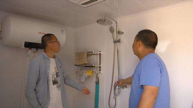 随后,记者来到老城镇水沟村村民余新兵的家中,不久前他家的卫生厕所已经改造完成。采访中余新兵告诉记者,今年三月下旬他开始对自家的厕所进行改造,仅用了四天时间,昔日的旱厕就“改头换面”。余新兵说,以前家里用的是旱厕,卫生条件堪忧,今年在政府的支持下,建成了新的洗澡间,不仅看起来美观,用起来更加干净卫生了。