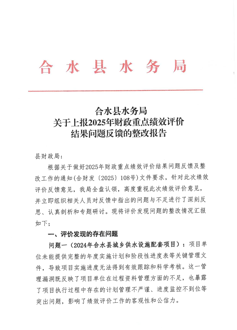 索引号: 3070211020000213000000/2025090500000030 发布机构: 生效日期: 2025-09-05 废止日期: 文 号: 所属主题: 通知公告 合水县水务局关于上报2025年财政重点绩效评价 结果问题反馈的整改报告 来源: 发布时间:2025-09-05 浏览次数: 次 【字体:小 大】 【打印正文】 分享到: 【字体:小 大】