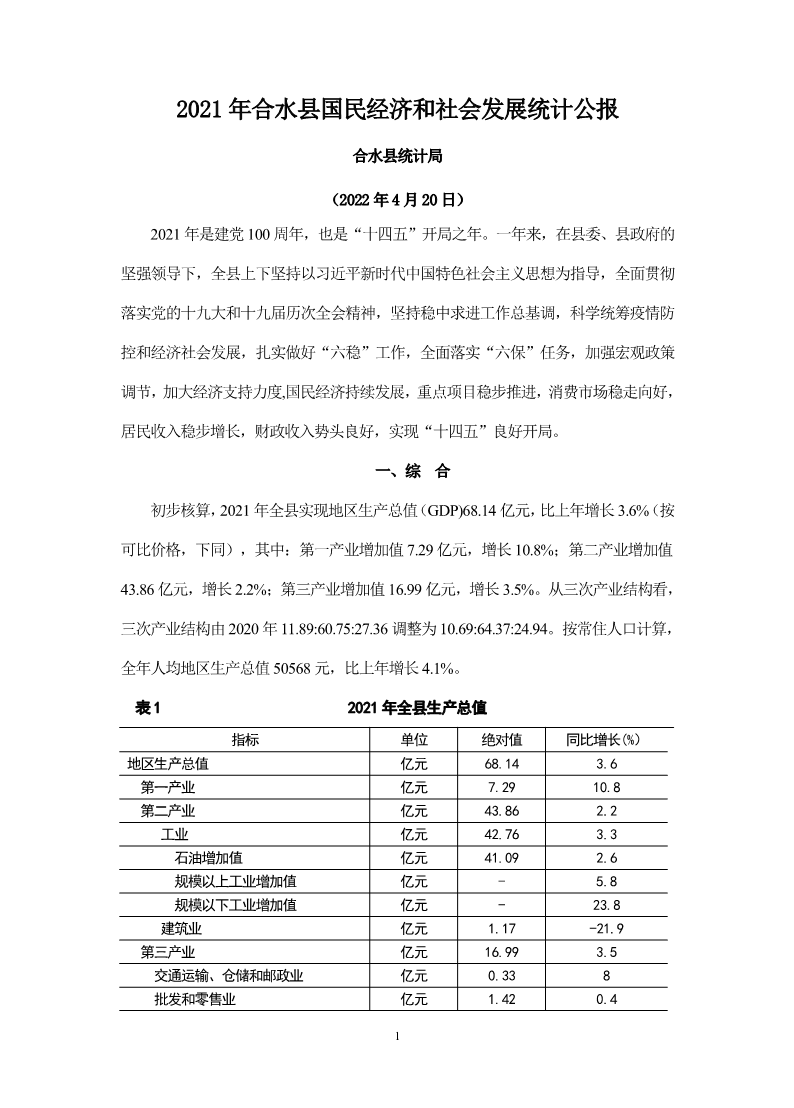 索引号: 3070211020000173000000/2022042100000006 发布机构: 生效日期: 2022-04-21 废止日期: 文 号: 所属主题: 统计数据 2021年合水县国民经济和社会发展统计公报 来源: 发布时间:2022-04-21 浏览次数: 次 【字体:小 大】 【打印正文】 分享到: 【字体:小 大】