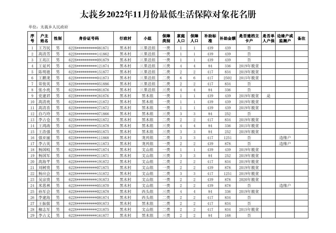 索引号: 3070211020000333000000/2022110800000078 发布机构: 生效日期: 2022-11-08 废止日期: 文 号: 所属主题: 村务公开 黑木村2022年11月份农村低保保障对象花名册 来源: 发布时间:2022-11-08 浏览次数: 次 【字体:小 大】 【打印正文】 分享到: 【字体:小 大】