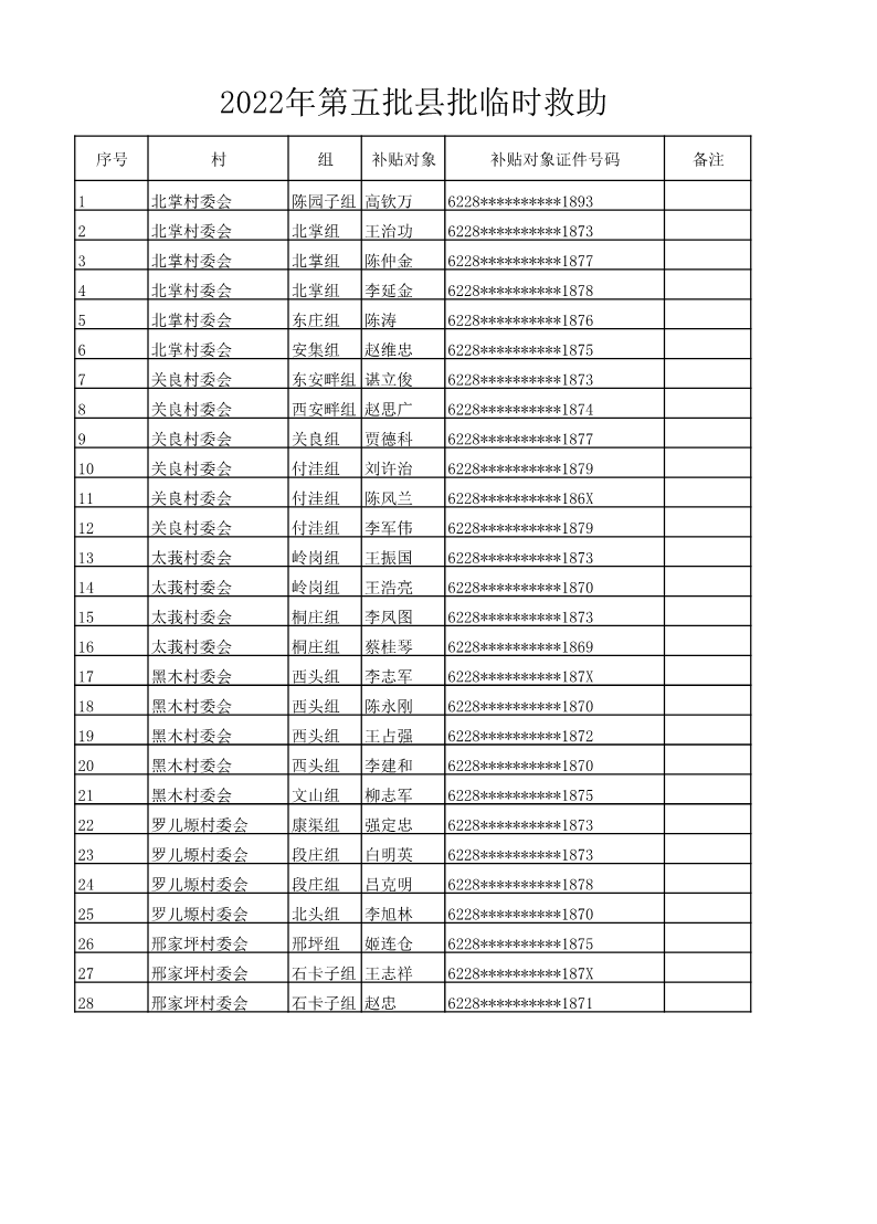 索引号: 3070211020000333000000/2022111700000094 发布机构: 生效日期: 2022-11-17 废止日期: 文 号: 所属主题: 村务公开 2022年第五批县批临时救助 来源: 发布时间:2022-11-17 浏览次数: 次 【字体:小 大】 【打印正文】 分享到: 【字体:小 大】