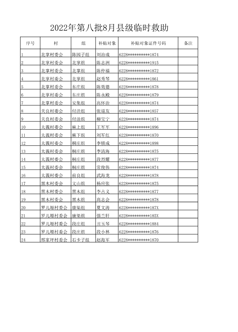 索引号: 3070211020000333000000/2022111700000098 发布机构: 生效日期: 2022-11-17 废止日期: 文 号: 所属主题: 村务公开 2022年第八批8月县级临时救助 来源: 发布时间:2022-11-17 浏览次数: 次 【字体:小 大】 【打印正文】 分享到: 【字体:小 大】