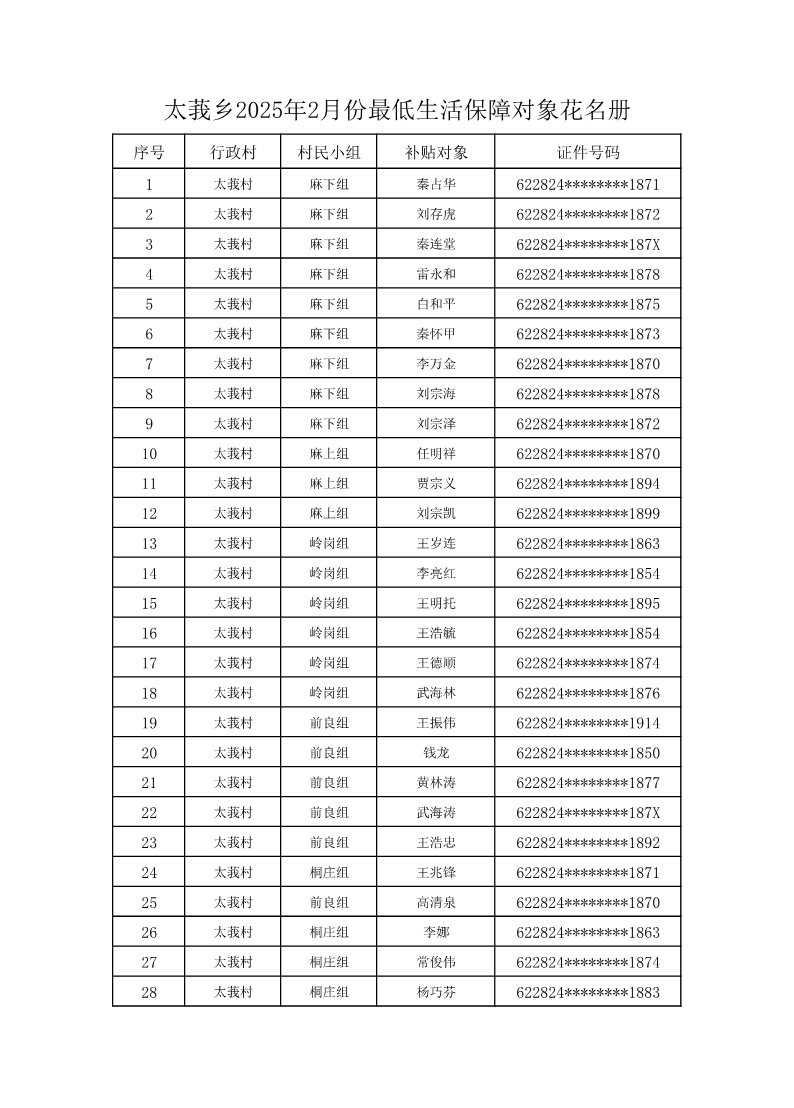 索引号: 3070211020000333000000/2025022100000011 发布机构: 生效日期: 2025-02-21 废止日期: 文 号: 所属主题: 村务公开 太莪乡太莪村2025年2月份最低生活保障对象花名册 来源: 发布时间:2025-02-21 浏览次数: 次 【字体:小 大】 【打印正文】 分享到: 【字体:小 大】