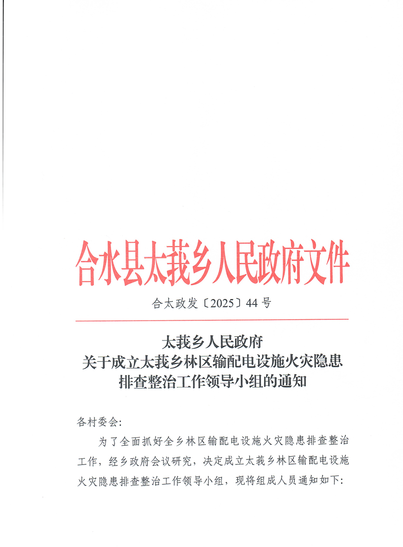索引号: 3070211020000333000000/2025112600000093 发布机构: 生效日期: 2025-05-07 废止日期: 文 号: 所属主题: 政府文件 关于成立太莪乡林区输配电设施火灾隐患排查整治工作领导小组的通知 来源: 发布时间:2025-05-07 浏览次数: 次 【字体:小 大】 【打印正文】 分享到: 【字体:小 大】