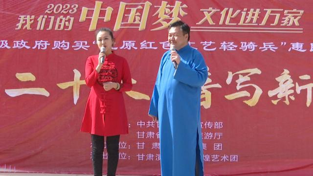3月14日,由中共甘肃省委宣传部组织、甘肃省文化和旅游厅主办、甘肃演艺集团承办、甘肃演艺集团敦煌艺术团演出的“我们的中国梦”文化进万家暨省级政府购买“陇原红色文艺轻骑兵”惠民演出在合水县西华池镇唐旗村、师家庄村开演,给村民们带来了一场精彩的“文化盛宴”。