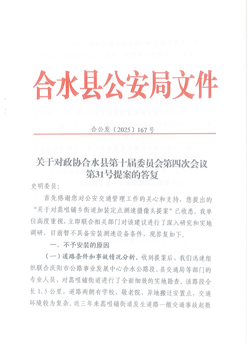 合水县公安局关于对政协合水县第十届委员会第四次会议第31号提案的答复
