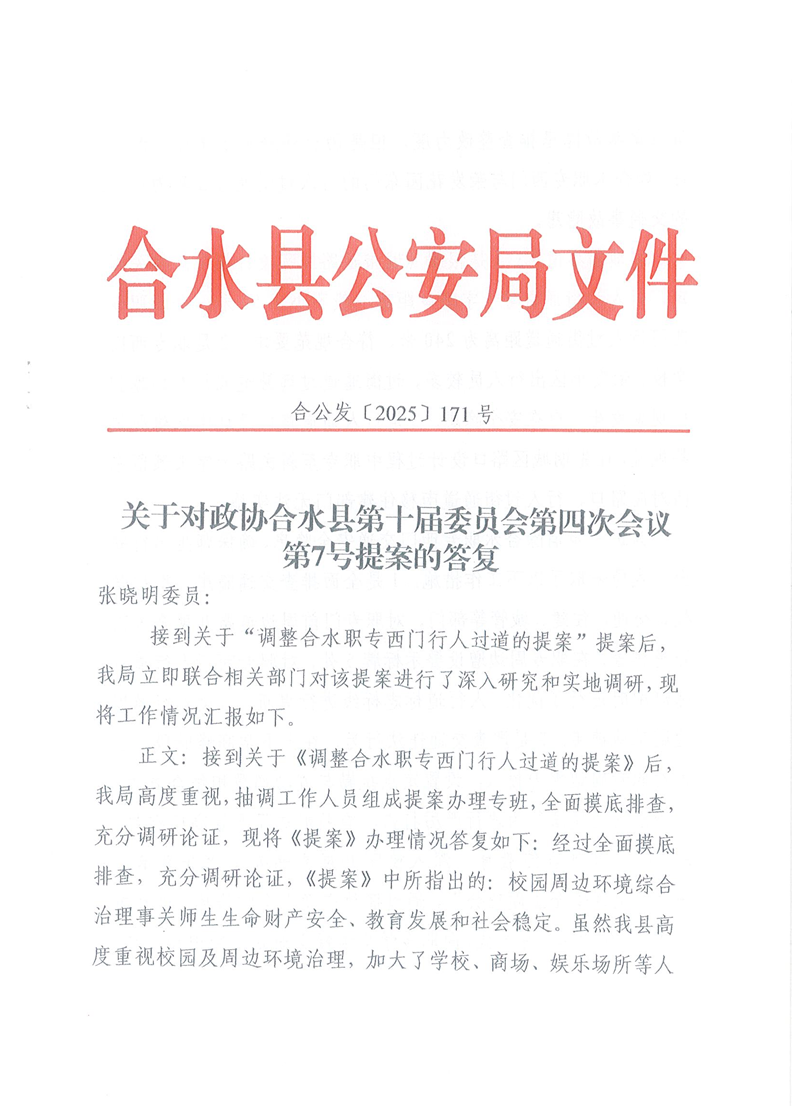合水县公安局关于对政协合水县第十届委员会第四次会议第7号提案的答复