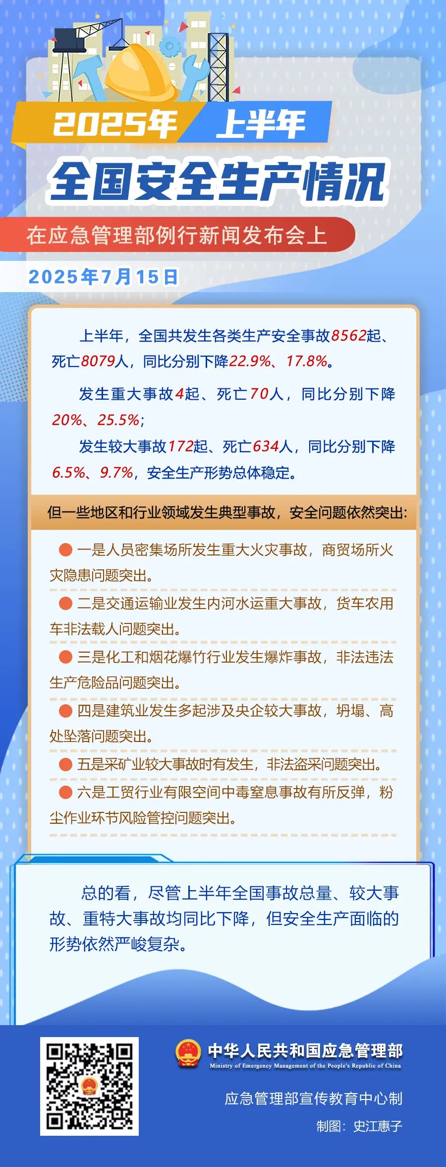 索引号: 3070211020000103000000/2025082000000046 发布机构: 生效日期: 2025-07-16 废止日期: 文 号: 所属主题: 安全生产 【新闻发布】2025年上半年全国安全生产情况 来源: 发布时间:2025-07-16 浏览次数: 次 【字体:小 大】 【打印正文】 分享到: 【字体:小 大】