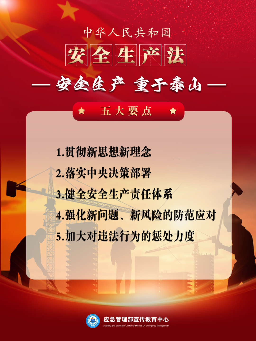 索引号: 3070211020000103000000/2025111800000071 发布机构: 生效日期: 2025-08-06 废止日期: 文 号: 所属主题: 应急管理 应急普法 | 带您一图读懂《中华人民共和国安全生产法》五大要点 来源: 发布时间:2025-08-06 浏览次数: 次 【字体:小 大】 关于应急管理方面的法律你都了解吗?今天我们来说一说《中华人民共和国安全生产法》2021年6月10日,全国人大常委会表决通过了关于修改《中华人民共和国安全生产法》的决定,自2021年9月1日起执行。今天通过一图读懂的形式,再来看下5大要点。 【打印正文】 分享到: 【字体:小 大】