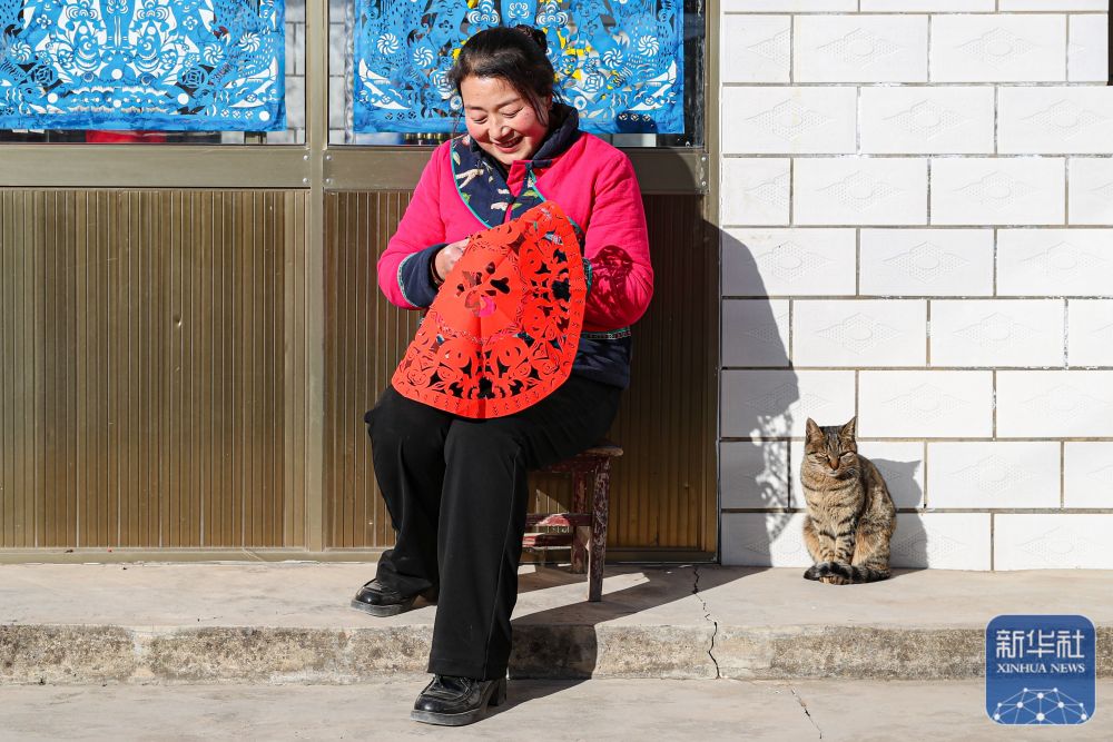 1月5日,在庆阳市合水县西华池镇唐旗村,张雪峰创作剪纸作品。