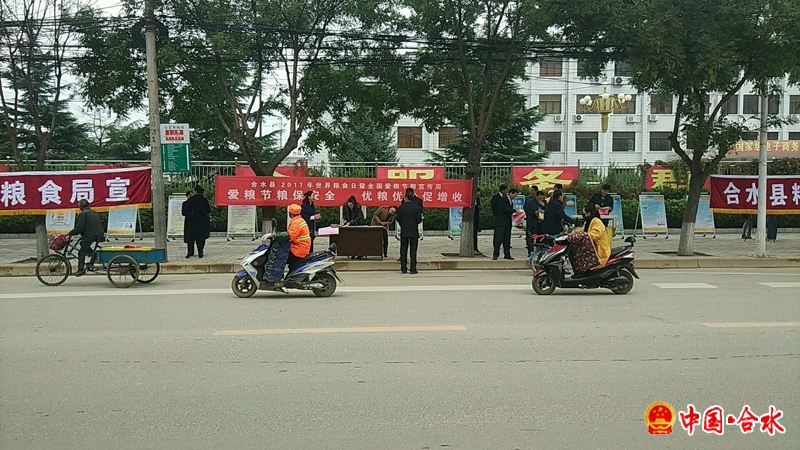 10月16日是第37个世界粮食日,本周也是第27个全国爱粮节粮宣传周。从10月16日开始,合水县粮食局联合县农牧、科技、教育、妇联等单位成立了“爱粮节粮保安全,优粮优价促收入”宣传队,以县城街道为主会场,各乡镇街道为分会场进行宣传。