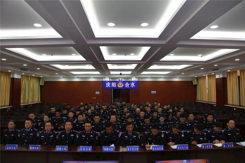 段军亮在讲话中指出,全县公安机关和广大公安民警要把学习贯彻习近平总书记重要讲话精神作为当前首要的政治任务,忠诚履职,务实创新,以全新的工作姿态和优异的工作成绩,实现好、维护好党中央对公安工作的新要求。一要迅速学习贯彻,确保习近平总书记重要讲话精神在合水公安落地生根。要在全县公安机关组织开展“大学习、大讨论”活动,通过召开学习会、领导讲党课、民警座谈会等多种形式,将习近平总书记系列重要讲话和全国公安工作会议精神迅速传达到每一名民警职工。要把会议精神作为党委中心组学习、县局集体理论学习的首要内容,带头学、深入学、反复学,坚持不懈地用以武装头脑、指导实践、推动工作。二要主动对标对表,用习近平总书记重要讲话精神全面推动全县公安工作更好发展。要把学习贯彻习近平总书记重要讲话精神转化为助推公安工作的现实成果,本着总结经验、发现问题、查找不足的目的,聚焦人民群众反映强烈的突出问题,瞄准制约公安工作发展的顽症痼疾,以防范化解矛盾风险为主线,紧贴合水实际,探索发展新时代“枫桥经验”,大力推行治安户长制,研究部署“百日大走访”行动,不断创新完善基层社会治理方式,努力营造更加安全稳定的社会环境,增强人民群众的安全感和满意度,确保庆祝新中国成立70周年大庆维稳安保任务圆满完成。三要坚持从严治警,用讲话精神引领公安队伍建设。要把党的领导落实到公安工作和队伍建设各个方面,严格执行《中国共产党政法工作条例》、《重大事项请示报告条例》等制度规定,严守党的政治纪律和政治规矩,坚持党管干部原则,积极履行“一岗双责”,强化民警职工教育管理,永葆绝对忠诚、绝对纯洁、绝对可靠的政治本色。
