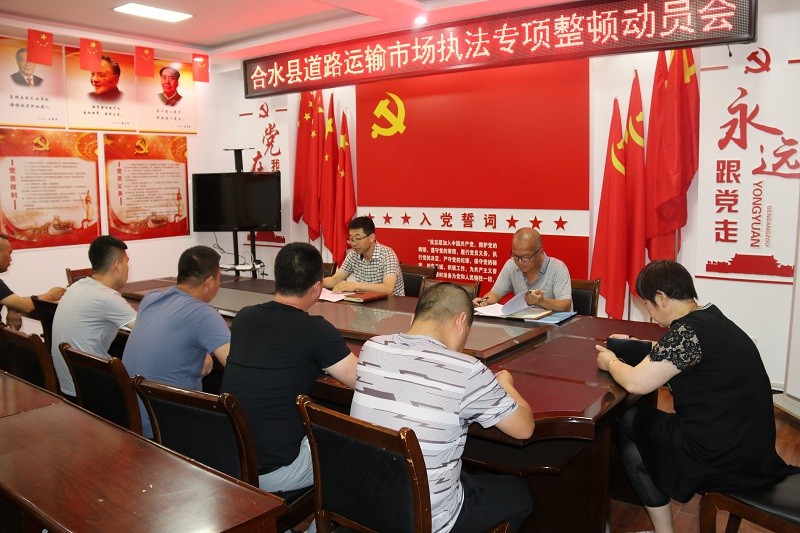 为规范全县道路运输市场经营秩序,营造“安全稳定、健康有序、协调发展”的道路运输市场环境,结合道路运输领域有关扫黑除恶专项斗争的总体部署,2020年7月27日上午,合水县运管局组织召开全县道路运输市场执法专项整顿会,县运管局全体领导职工参加本次会议。