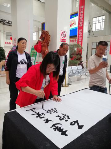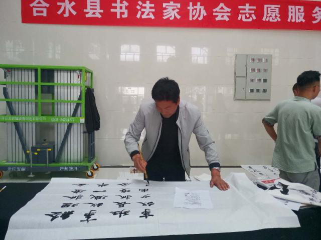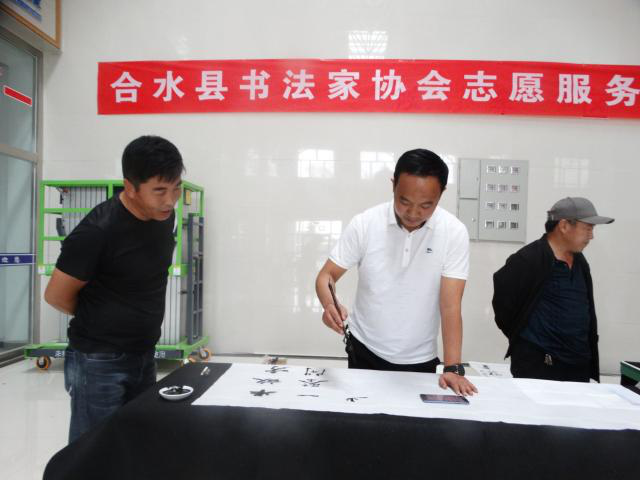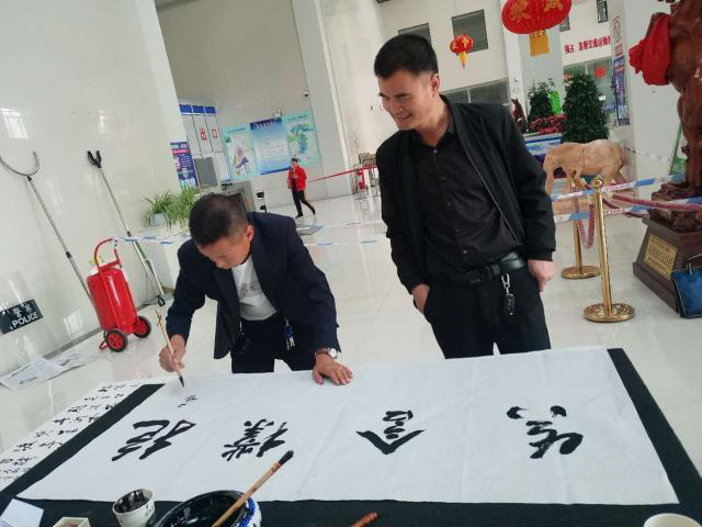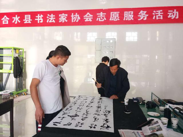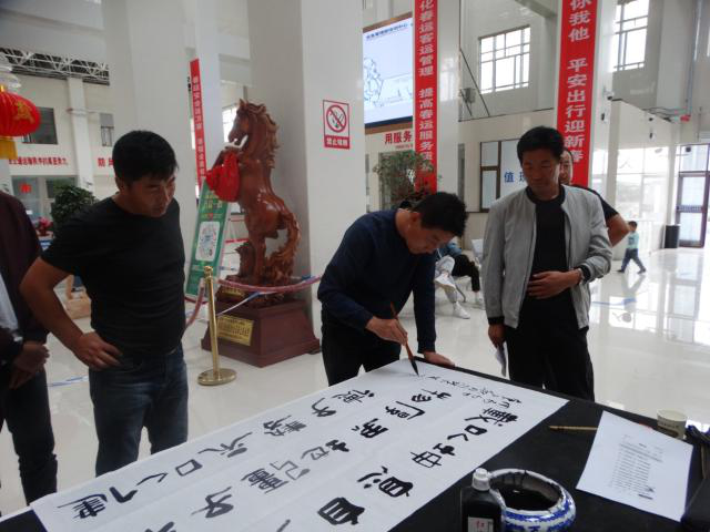 为弘扬向上向善的道德风尚,把社会主义核心价值观传播到企业,把文化艺术精神食粮输送到交通运输基层一线干部职工手中,携手群众脱贫致富、共奔小康,为全县脱贫攻坚及乡村振兴工作鼓劲加油。9月5日下午,由合水县文联、县交通运输集团主办,县书协承办的“携手奔小康 送书法进企业 创建平安合水”志愿服务活动在县交通运输集团开展。