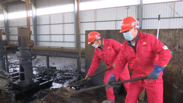 近日,记者来到位于吉岘镇的甘肃金圣洁环保能源科技有限公司合水分公司看到,工人们正在对拉运回来的油污泥进行热洗分类处理。