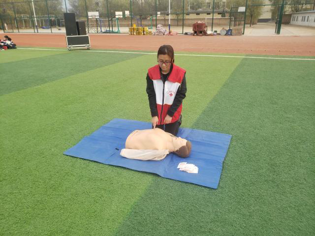 培训现场,县红十字会救护培训师通过现场教学、真人模拟示范、受训对象亲身体验等方式,为师生讲解了心肺复苏操作流程、AED除颤仪的使用方法及气道异物梗阻、创伤救护、常见急症、意外伤害急救处置等急救技能,并针对学校突发事故中容易出现的如运动受伤后如何快速止血、外出血紧急包扎、骨折固定和搬运以及急救中如何调整体位、打开气道、判断呼吸、人工呼吸、胸外心脏按压等应急救护技能进行了现场操作演练。旨在通过培训,让广大师生能系统掌握急救知识和技能,进一步增强紧急避险和自救互救的能力,不断推动平安和谐校园建设。