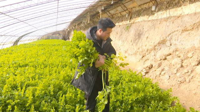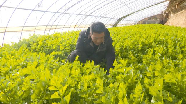 今年27岁的丑文江是吉岘镇九顷湾村村民,他家有三座日光温室大棚。记者见到他时,他正在自家种植的芹菜大棚里除草。他告诉记者,今年的芹菜大概能产三千多斤,预计收入大约三万元左右。