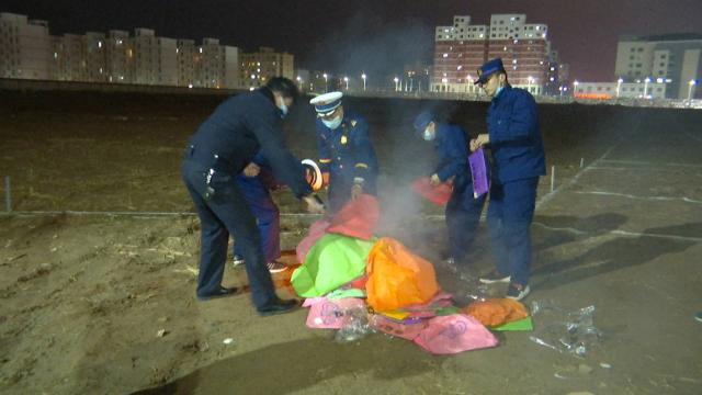 此次检查现场收缴了孔明灯60余盏,并进行了集中焚毁。