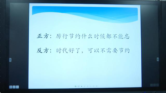 近日,在合水职专中二计算机班,一场围绕“生活越来越美好,是否还需要提倡勤俭节约”的辩论赛正在激烈进行,正反双方围绕各自观点进行了紧张辩论。最终,正方“节约粮食是一种美德,任何时候都不能丢”的观点赢得了胜利。