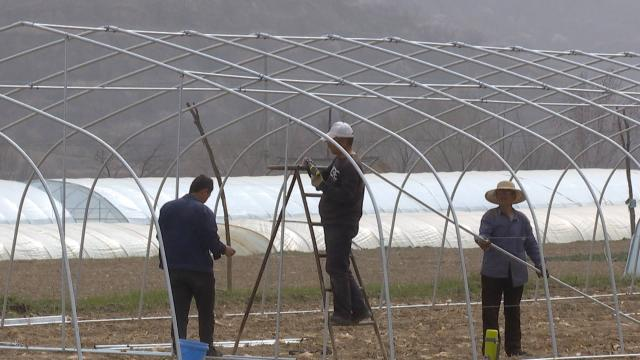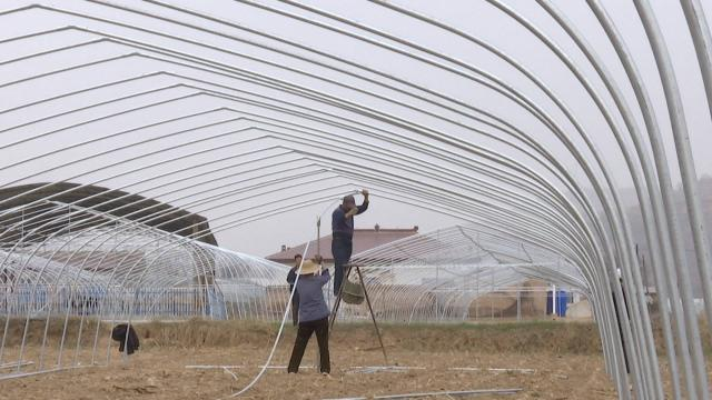 与此同时,记者在合水县板桥镇锦坪村的一处农田里看到,一座座尚未覆膜的镀锌钢架大棚在阳光的照耀下熠熠生辉。