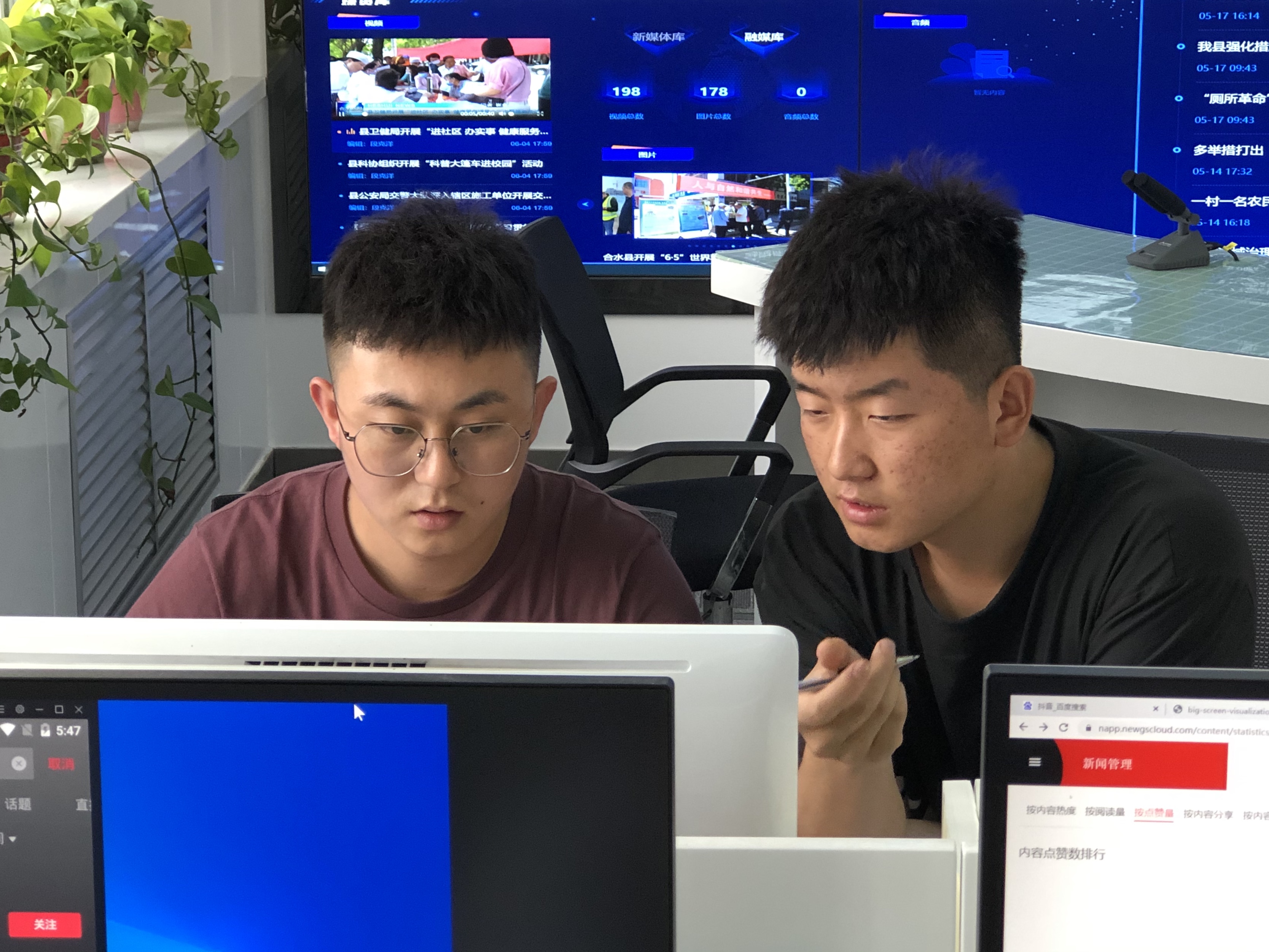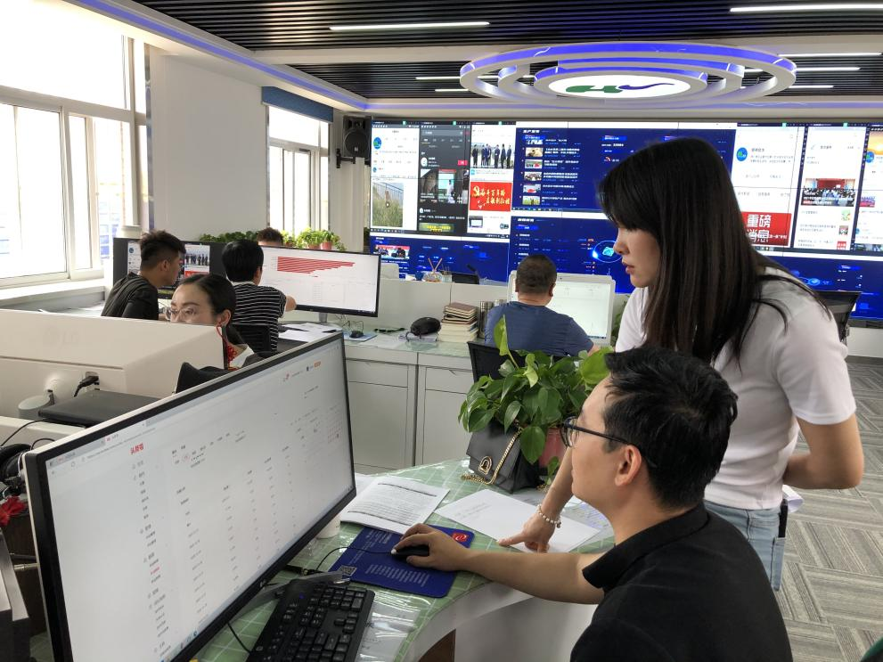 第三方评估组在合水县融媒体中心指挥大厅新媒体平台检查“一端、两微、一条、一号”数据信息,审计专项资金落实,评估项目运行绩效。