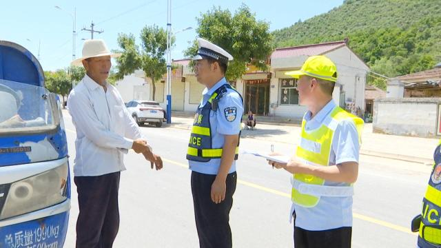 记者在蒿咀铺乡主要路段看到交通安全劝导员和民警对过往车辆、农村三轮车进行教育劝阻,纠正不良交通行为。