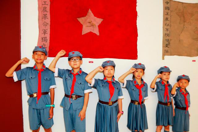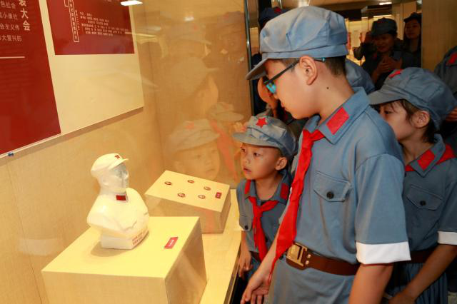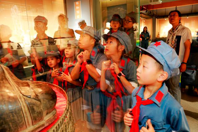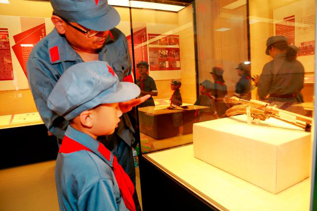 在革命历史文物展厅,家长和“小油娃”们一边参观,一边听讲解。通过聆听革命先辈的英雄事迹、感受共产党人不懈奋斗的感人情怀,进一步激发家长和孩子们的爱国热情,强化为人民服务的初心使命。