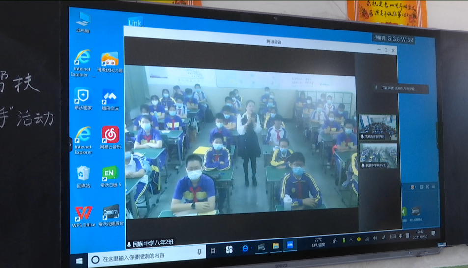 为进一步促进与对口帮扶学校——天津民族中学的学术互动,资源共享,优势互补,实现两校教育高质量发展,9月30日上午,合水县吉岘九年制学校八年级(2)班通过视频与天津民族中学八年级(2)班开展了“津陇手拉手 同上一节课”课堂交流活动。