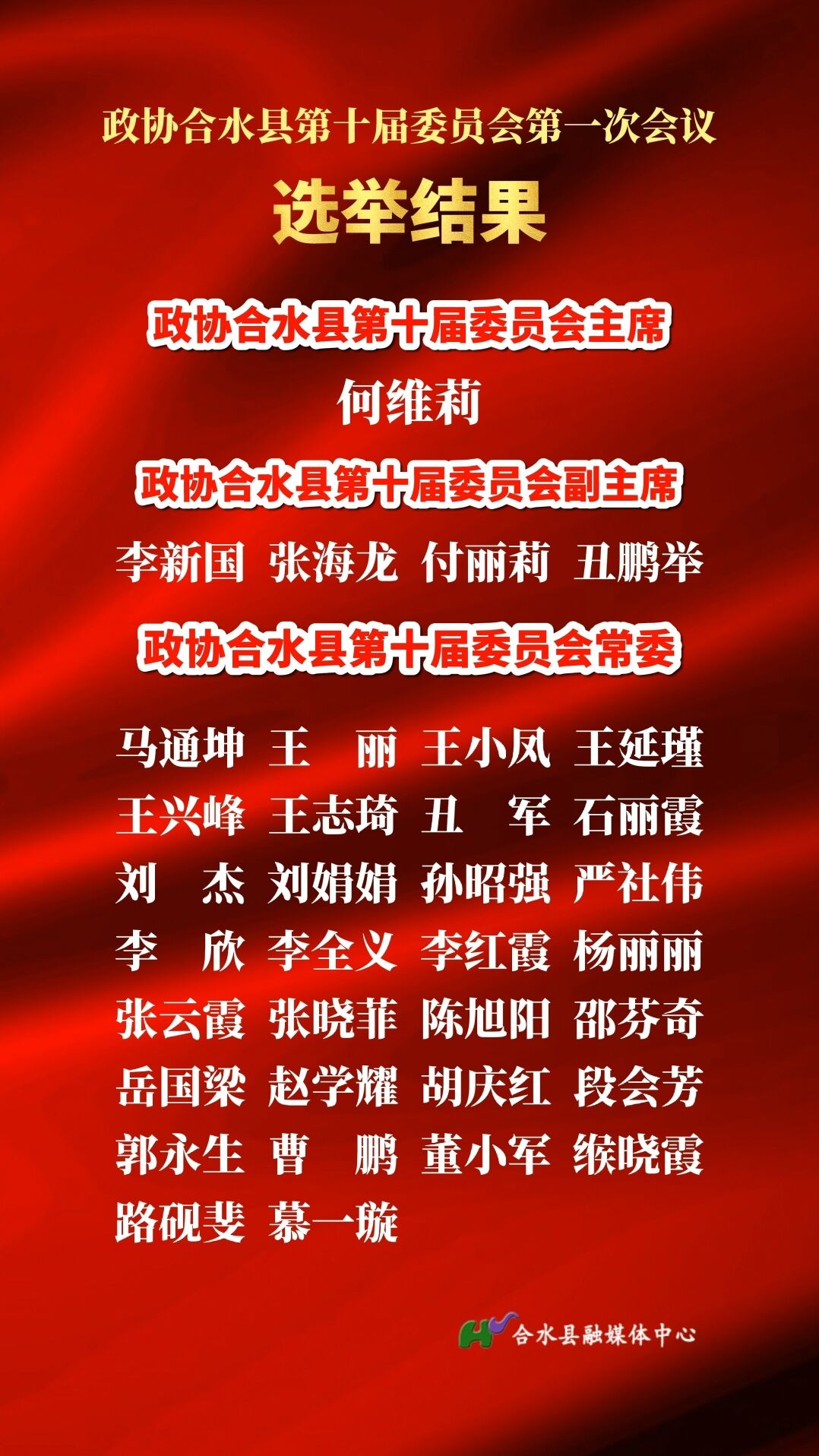 政协合水县第十届委员会第一次会议选举结果 来源:合水县融媒体中心 作者: 发布时间:2021-11-20 10:08:20 浏览次数: 次 【字体:小 大】 终审:李苗苗 【打印文章】 【关闭窗口】 分享到: