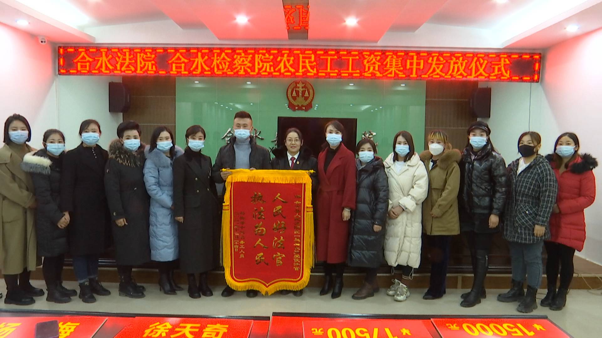 近日,合水县人民法院、人民检察院联合举办了农民工工资发放仪式,为15名农民工发放了20.45万元的工资报酬。
