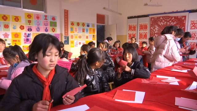 而在剪纸社团又是另一番景象。剪纸老师---中国民间剪纸艺术大师“陇东工匠”张雪峰正在带领孩子们感受剪纸艺术,学习剪纸技巧,用一把剪刀、一张红纸为孩子们现场示范。