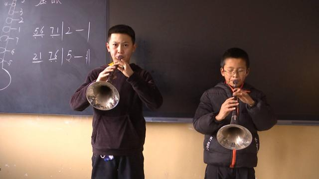近日,记者在合水二中的民乐社团活动现场看到,同学们正在进行唢呐表演,铿锵有力的声音在教室里久久回荡。