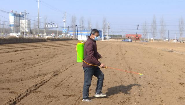 随后记者来到吉岘镇吉岘村,只见村民们正背着喷雾器为即将旋耕覆膜的地块喷施除草剂。“顶凌覆膜需要机械也需要充足的劳动力来完成压膜,村上积极组织协调机械,同时组织群众相互帮忙,力求抢时抢墒,尽早完成全村1200亩的顶凌覆膜任务。”吉岘镇吉岘村村委会副主任高鹏说。