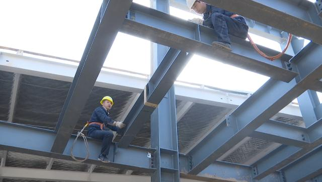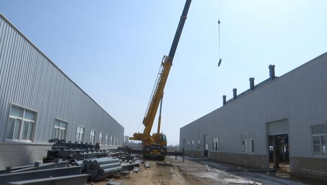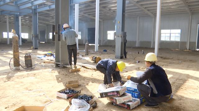 近日,记者在甘肃秦直乳业有限公司羊乳湿法生产线及果汁固体饮料生产车间项目建设施工现场看到,大型吊车正在吊装钢梁,工人们也井然有序地对钢梁进行调整、安装、焊接。