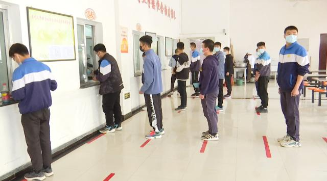 自新冠肺炎疫情发生后,吉岘九年制学校便实行错峰就餐,要求学生在餐饮楼前按照一米间隔站好队列,有序进入食堂取餐,然后在餐厅隔位就座用餐,用餐结束后尽快离开餐厅。