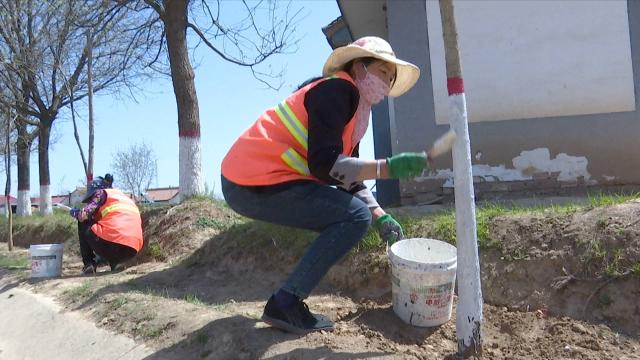 近日,记者在段家集乡化沟村罗段公路沿线看到,村民们正忙着给栽植好的国槐进行涂白,防治病虫害,现场一片忙碌景象。