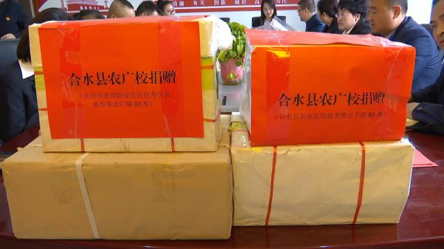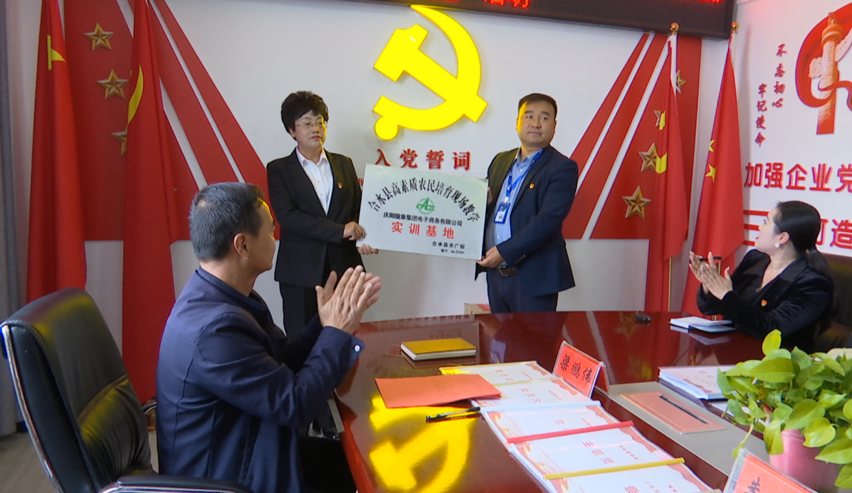 活动中,县农广校还为庆阳陇象集团电子商务有限公司颁发了“合水县高素质农民培育实训基地”牌匾,并捐赠了200套价值5000元的图书。