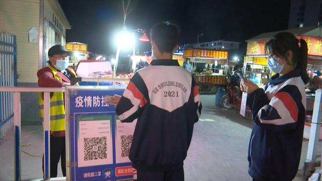 晚上8时,记者走进中街餐饮综合临时市场看到,前来就餐的市民络绎不绝。大家佩戴好口罩在防疫人员引导下,进行扫码、登记、测温后才能依次进入。