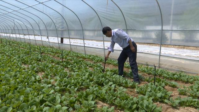 闫学斌告诉记者,要想把菜种好,就必须把浇灌的喷杆拉好,用播种机播种,然后要适当减苗:“我种出来的菜,叶色绿,叶片厚,从来不打农药,绿色种植,吃起来更放心。”