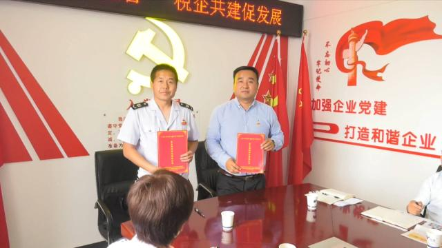 国家税务总局合水县税务局第二党支部前往庆阳陇象集团电子商务有限责任公司与该党支部联合开展以“党建业务深融合 税企共建促发展”为主题的主题党日活动。活动采取“理论学习+企业调研+业务辅导”的模式,介绍了各支部情况、学习甘肃省第十四次党代会精神,并围绕会议精神开展了交流研讨。随后,两位党支部书记代表各党支部,本着“党建引领、税企共建、减税降费、互促发展”的原则,签订了《党支部结对共建协议书》。