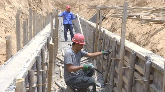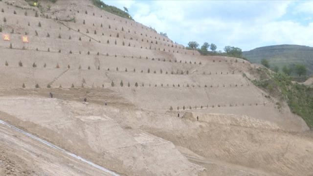 近日,记者在肖咀镇铁赵村大(2)型淤地坝建设项目施工现场看到,整座大坝坝体已经完工,施工人员正加快速度对防洪便道进行施工,争取在主汛期来临之前完成所有工程。