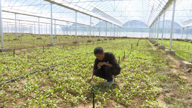 入秋以来雨水充足,为秋菜生长提供了良好气候条件。在合水县老城镇牧家沟村连体大棚内,村党支部副书记陶志义正在照看初露苗头的叶菜。据了解,牧家沟村村民多年来都以种植大棚蔬菜为主,但是一年仅一茬的收益有些不尽如人意。对此,陶志义和村两委积极探索种植方式,带头种植叶菜,希望通过党员带头的方式打消村民种植的顾虑。