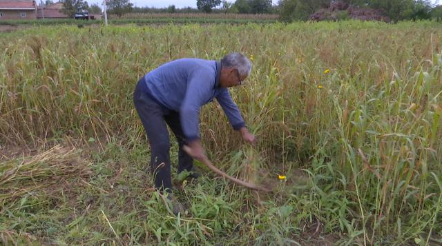 这两天,段家集乡宜州村村民张世英正忙着收割糜子。放眼望去,金灿灿的一片,一串串颗粒饱满、沉甸甸的糜穗挂满枝干。张世英告诉记者,他的8亩地里种了麦子、玉米、紫苏、糜子等杂粮,前期玉米收割后已经复种上菜籽。