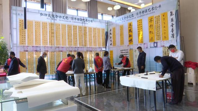 活动中,志愿者们现场挥毫泼墨,通过书法创作,为在场观众送上一场文化大餐。旨在通过活动的开展,为全县广大的书法爱好者提供展示自我的平台,增强全县书法爱好者的互动与交流,传扬中华民族传统文化艺术,以书法形式描绘大美合水。