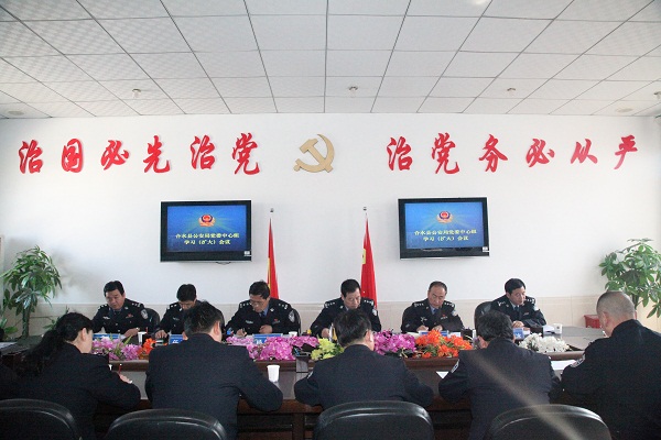 11月1日上午,我局在四楼会议室召开党委中心组学习(扩大)会议专题,专题学习贯彻党的十八届六中全会精神,局党委班子在家成员、各部门负责同志参加会议,县政府党组成员、公安局党委书记、局长吕立峰主持会议并做重要讲话。