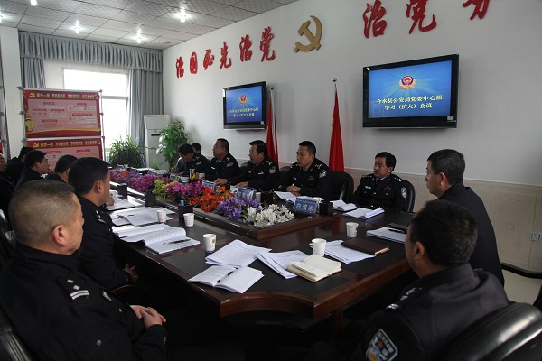 11月29日上午,县公安局召开党委中心组学习(扩大)会议,学习贯彻党的十八届六中全会、庆阳市第四次党代会、合水县第十五次党代会精神,安排部署纪律作风大整顿等工作。会议由县政府党组成员、局党委书记、局长吕立峰主持。局在家班子成员、各部门负责人共46人参加会议。
