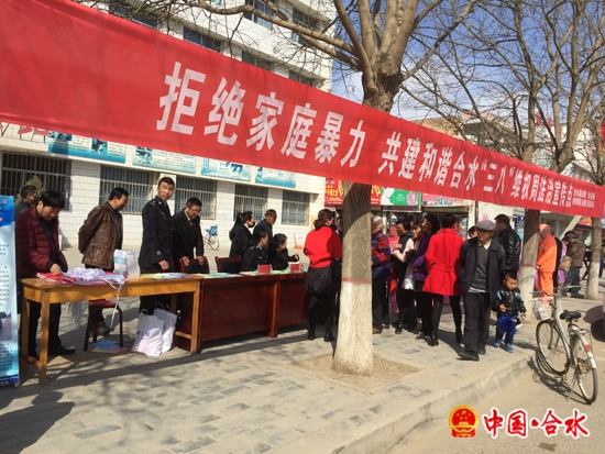 3月8日,司法局参与全县“拒绝家庭暴力 共建和谐合水‘三八’维权周法治宣传教育”活动,为群众解答法律咨询、发放宣传资料,提供了丰富的法律服务。